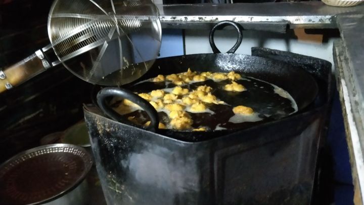 Visit ‘Jai Malhar Snacks Corner’ – small eatery joint managed by a husband and wife. Though it is a ‘tapri’ they have managed good hygiene conditions. They sell hot Vada pav and Bhajiya . You should try their kandha (onion) bhajiyas. They also serve the small pakodas / bhajiyas.