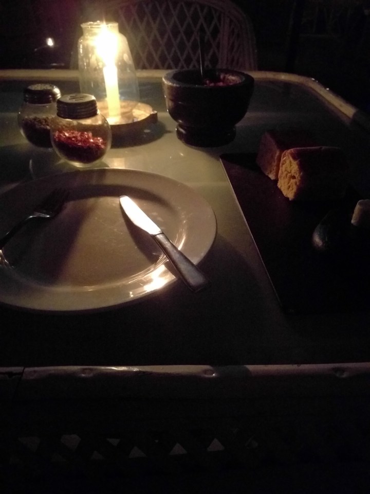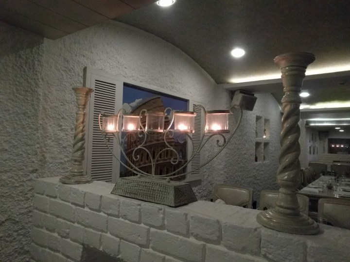 The flooring of the entry point is designed in such a way that you get the feel of the European cobble streets decorated with pebble stones underneath. This is enhanced with a small water body flowing beneath the entrance. You will be greeted with colourful wall art works predominantly in blue color on top of the white walls. The décor and ambience is top notch and we’ll maintained considering that this place is 5 years old. They have a covered area and an open area seating as well. I chose to occupy a table on the outside to enjoy the cold weather. Candle lights and mashals are the only lights that will guide you to be table. The whole place is very cosy and will make you wish that you were here with your partner to enjoy the awesome weather and ambience.