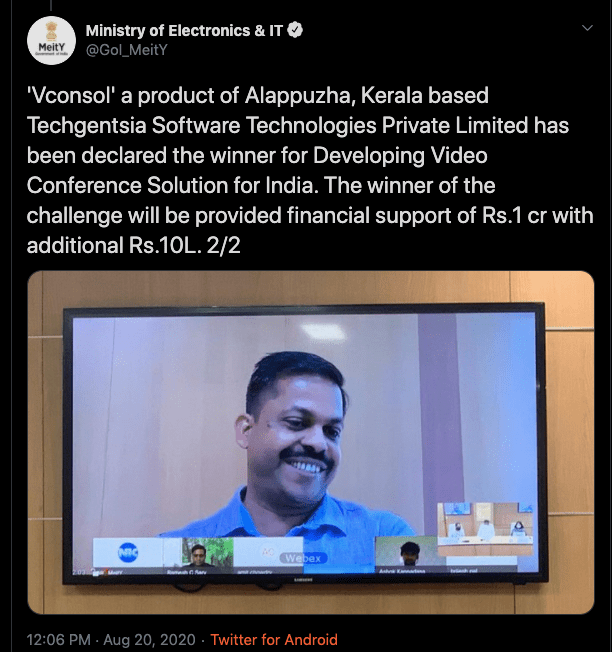 Updated on 20th Aug, 2020: Techgentsia wins the Video Conferencing Solution Challenge. Kudos to Joy and Team Techgentsia.