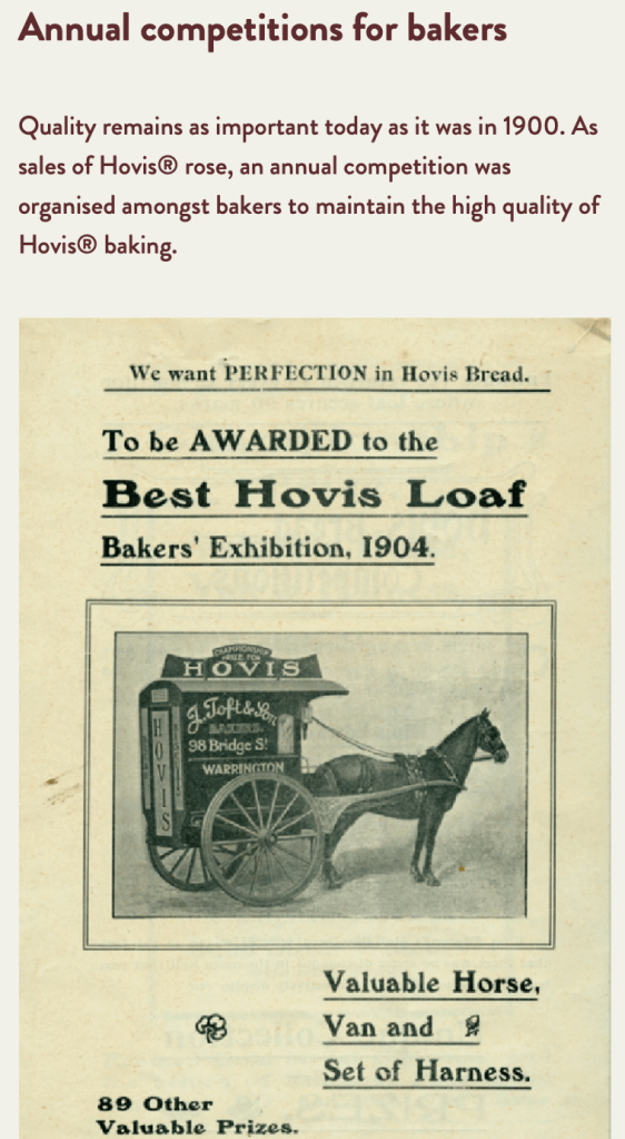 The name Hovis was decided after a competition which was run in 1890 to get suggestions for the brand name. The winner , Herbert Grime (who took home £25), recommended the name ‘Hovis’ from the latin words ‘Hominis Vis’ meaning ‘Strength of Man’.