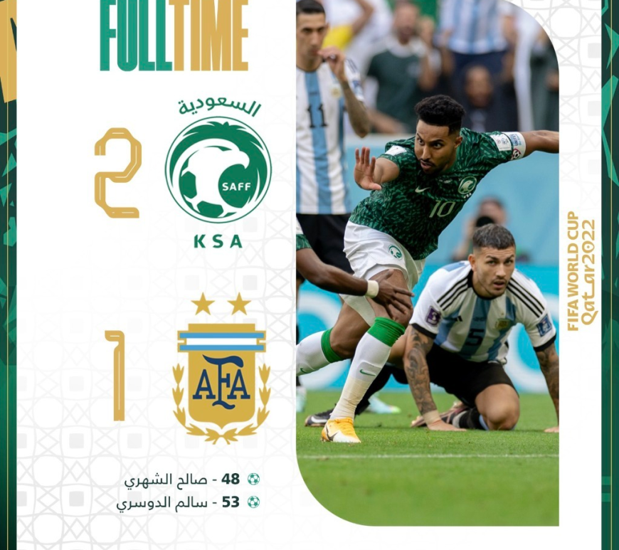 The biggest shocks in #FIFAWorldCup history. This is what FIFA said about the victory of Saudi Arabia against two time World Cup Champions, Argentina. Argentina came to this World Cup with a superb form of 36 unbeaten games, just a couple of games away from making a record. Since 1930, Argentina never lost a World Cup match after having a half time score of 1-0. … Continue reading The Falcons fly high at the biggest sporting event , FIFA World Cup 2022