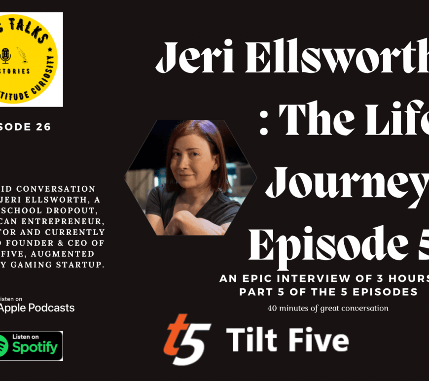 Jeri talks about the early days of Tilt Five. The initial days of putting together the team, technology , why the name ‘Tilt Five’ and the call she received from Atari founder Nolan Bushnell which actually pushed her to start Tilt Five. Continue reading Jeri Ellsworth: Life Journey: Episode 3