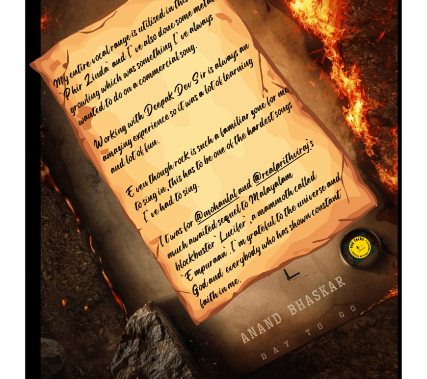 It was for @mohanlal and @realprithviraj’s much awaited sequel to Malayalam blockbuster ‘Lucifer’, a mammoth called ‘Empuraan’. I’m grateful to the universe and God and everybody who has shown constant faith in me. Continue reading Musical Journey of Anand Bhaskar : Stay grounded, Follow your passion: Phir Zinda