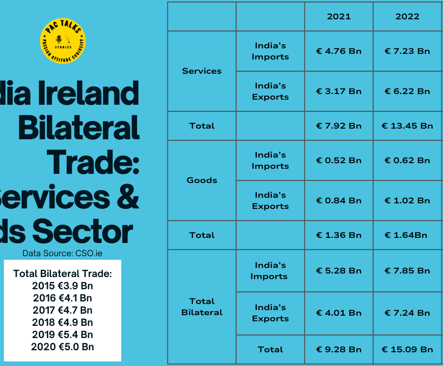 The bilateral trade between India and Ireland has seen a significant upwards trajectory in the last 9 years. From € 3.9 Bn in 2015 to € 9.7 Bn in 2022, this corridor has seen a growth of approximate 150%. Continue reading India Ireland bilateral trade picking up significant pace, nearing € 10 billion annually with India’s export of goods sector approaching € 1 Bn and services sector estimated at € 3.5 Bn