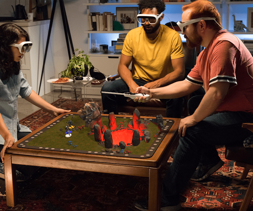 There are games already in the market which use Virtual Reality but then you are completely cut off from the real world. With Tilt Five players can have a more social experience, and they will still be able to see the real objects around them. They’ll be able to see their friends sitting around them, as well as enjoy their pizza, chips or coke. Tilt Five also blends objects, such as playing cards, tokens, and minis, as well as hand gestures, and that’s what makes it mixed reality. Continue reading Jeri Ellsworth & Tilt Five : From Dirt Track Races to Augmented Reality Games: Bringing players together & tabletop games to ‘Life’